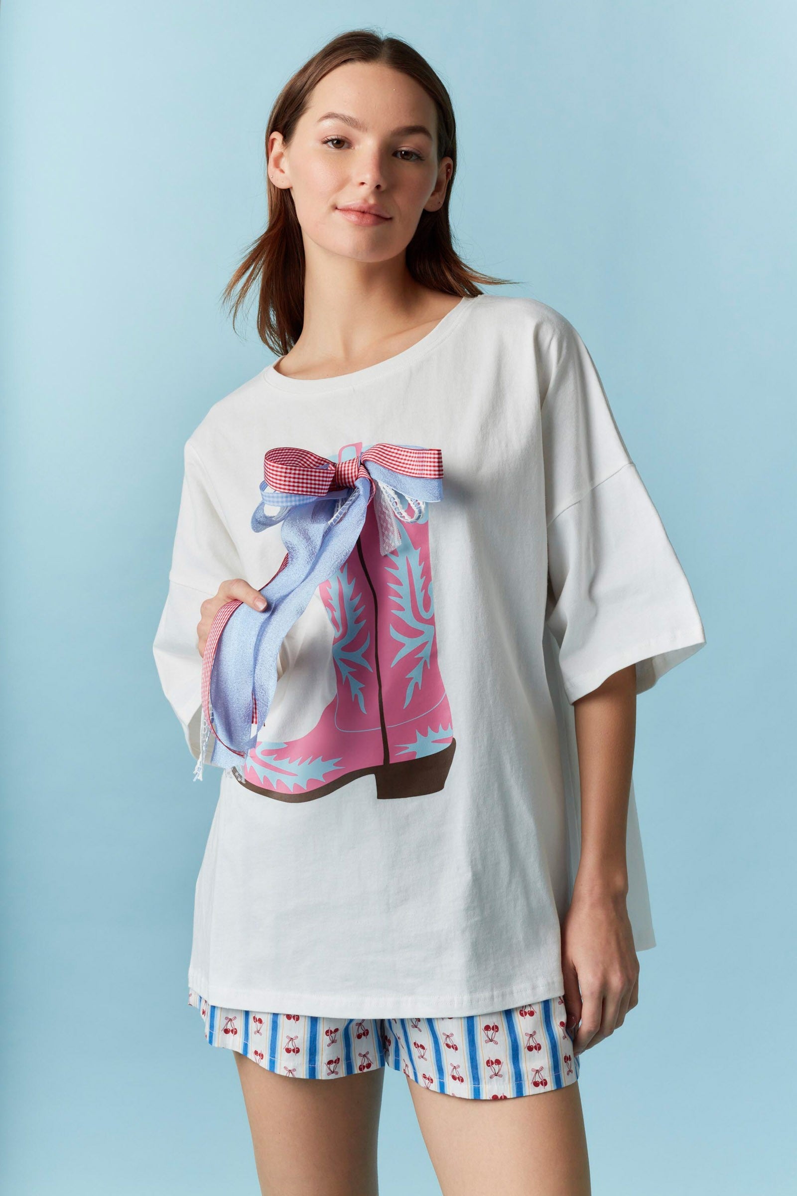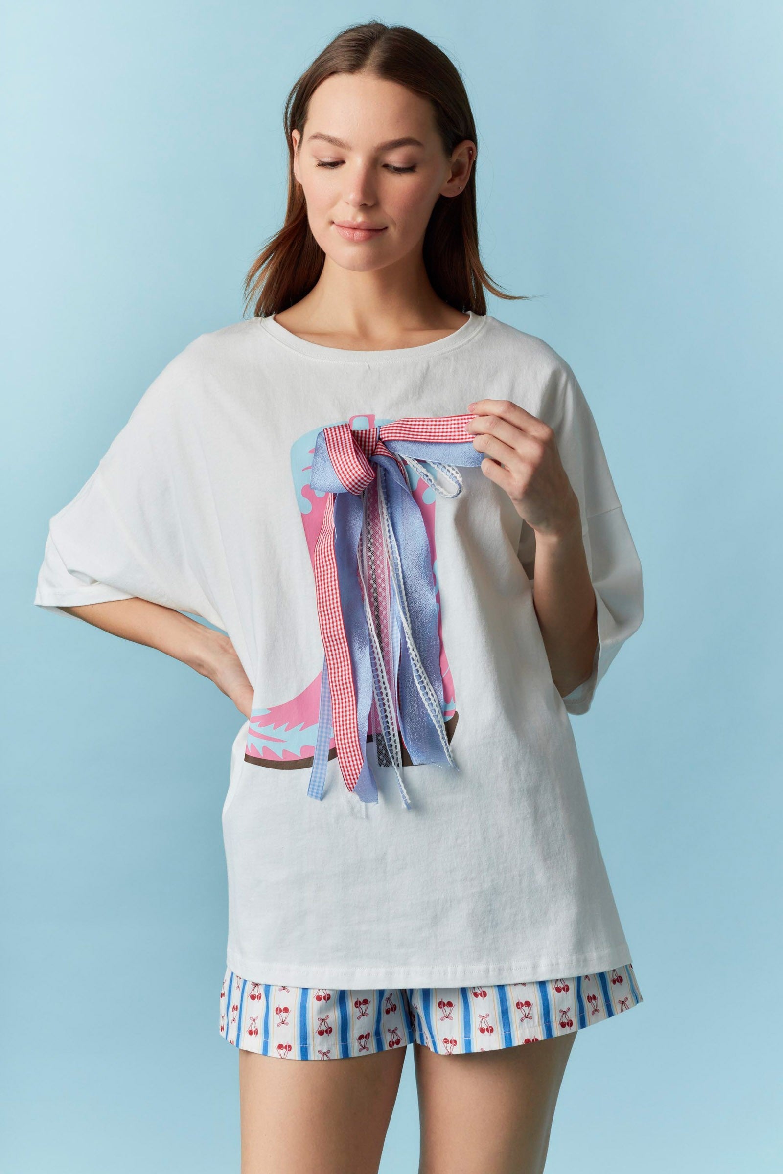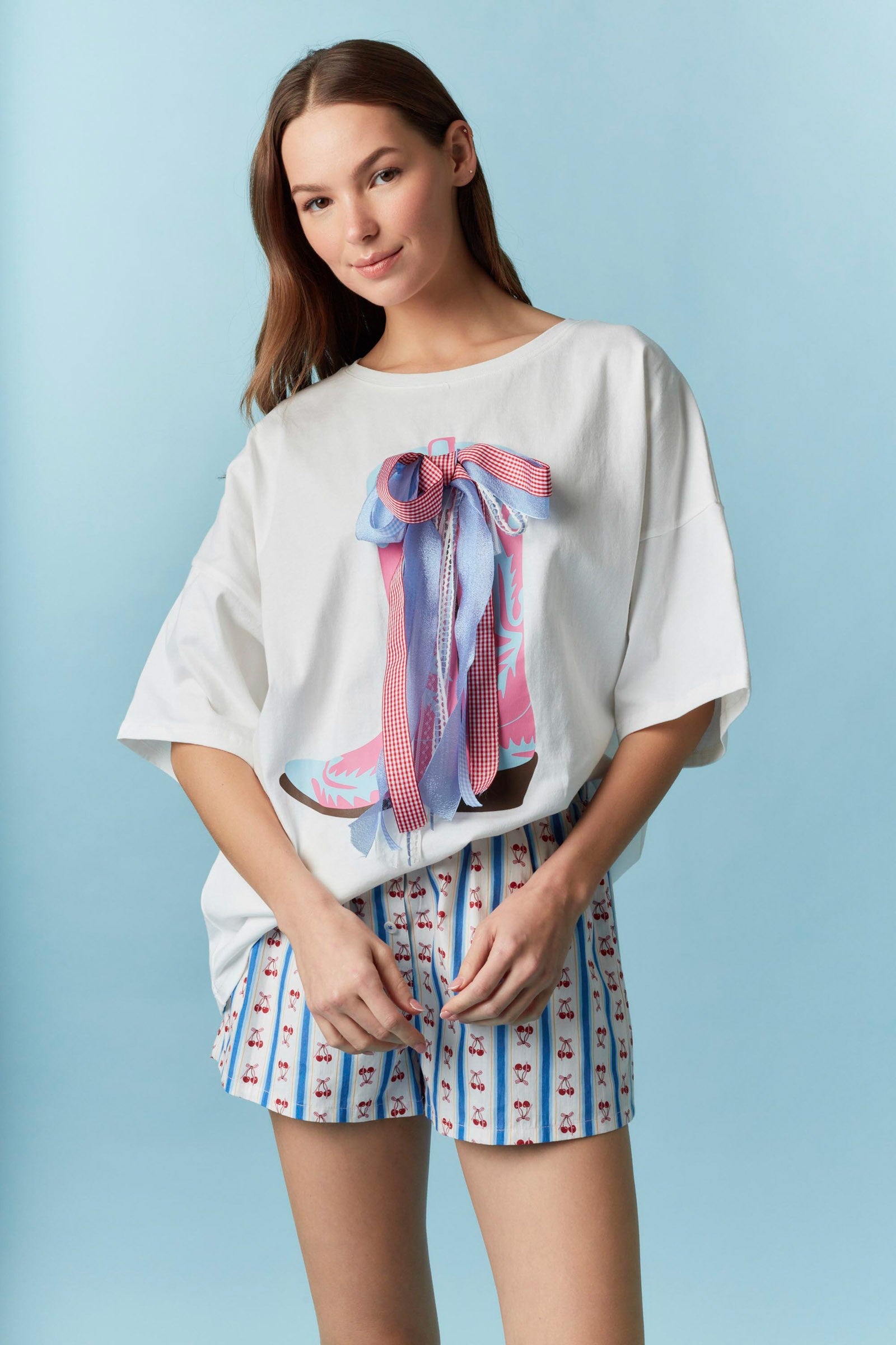 Boots Graphic Printed Multi Bow Detail T-Shirt