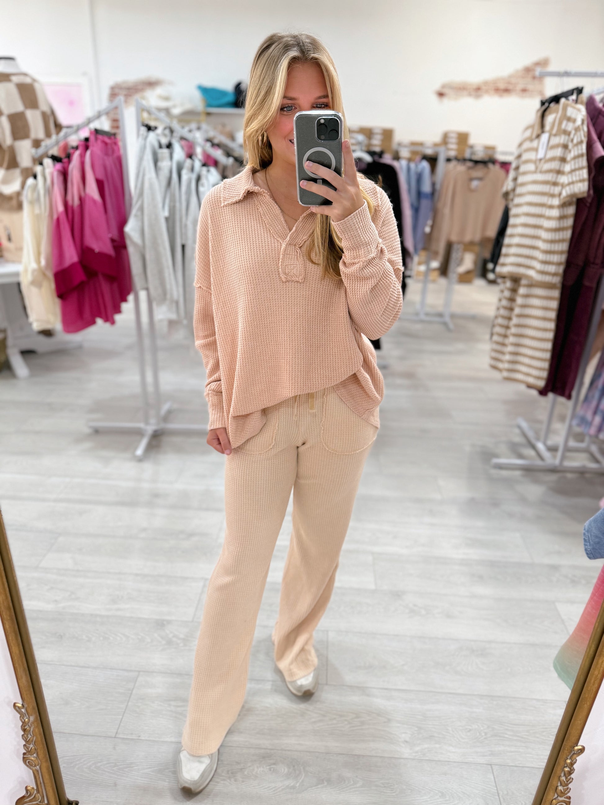 Experience ultimate comfort with our Cotton Waffle Sweatpants. Designed for breathability and warmth, these mineral-washed sweatpants feature a relaxed fit with straight, slightly wide legs. The adjustable waistband ensures a perfect fit, while side pockets with raw seaming details add a stylish touch. Perfect for lounging or casual outings.