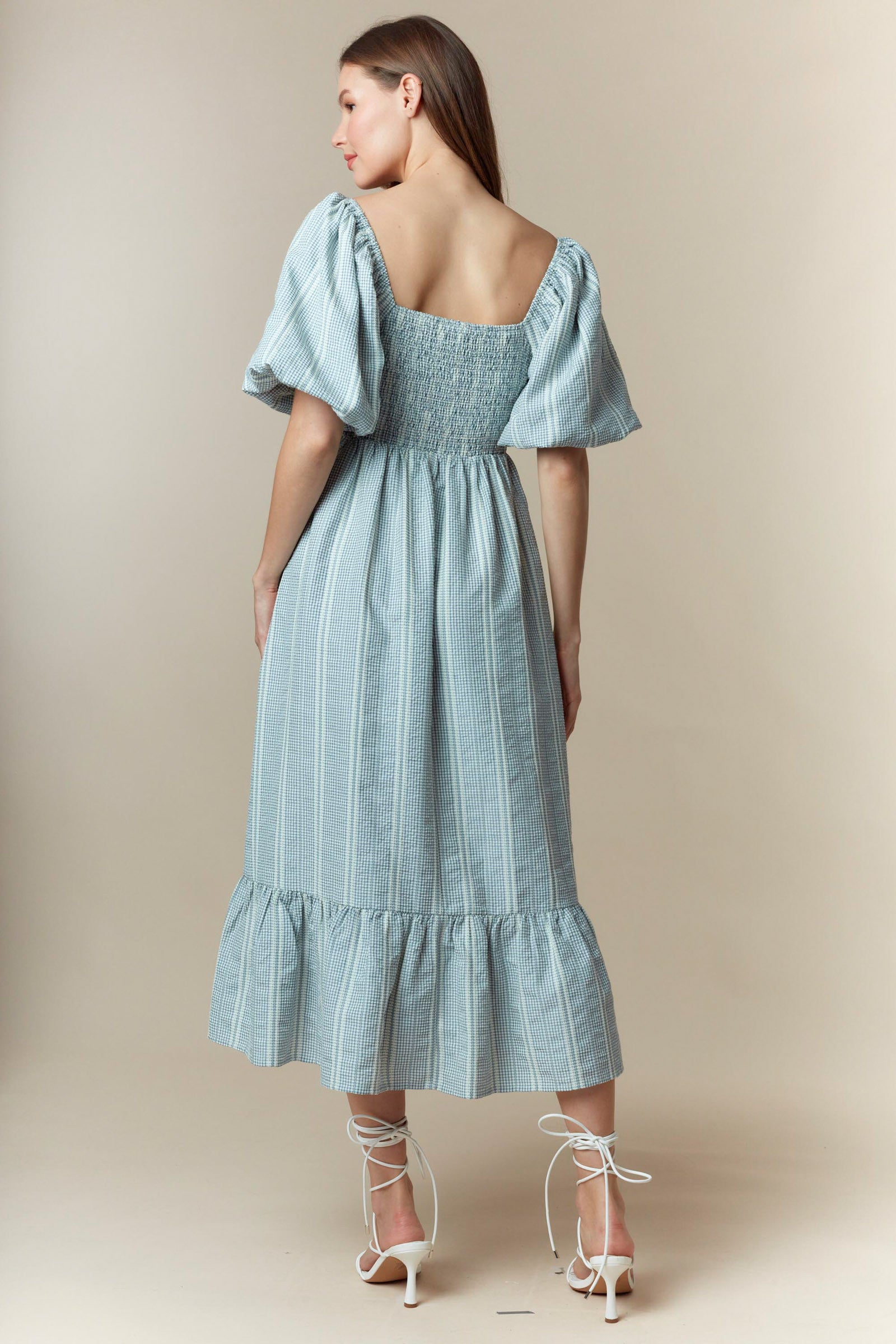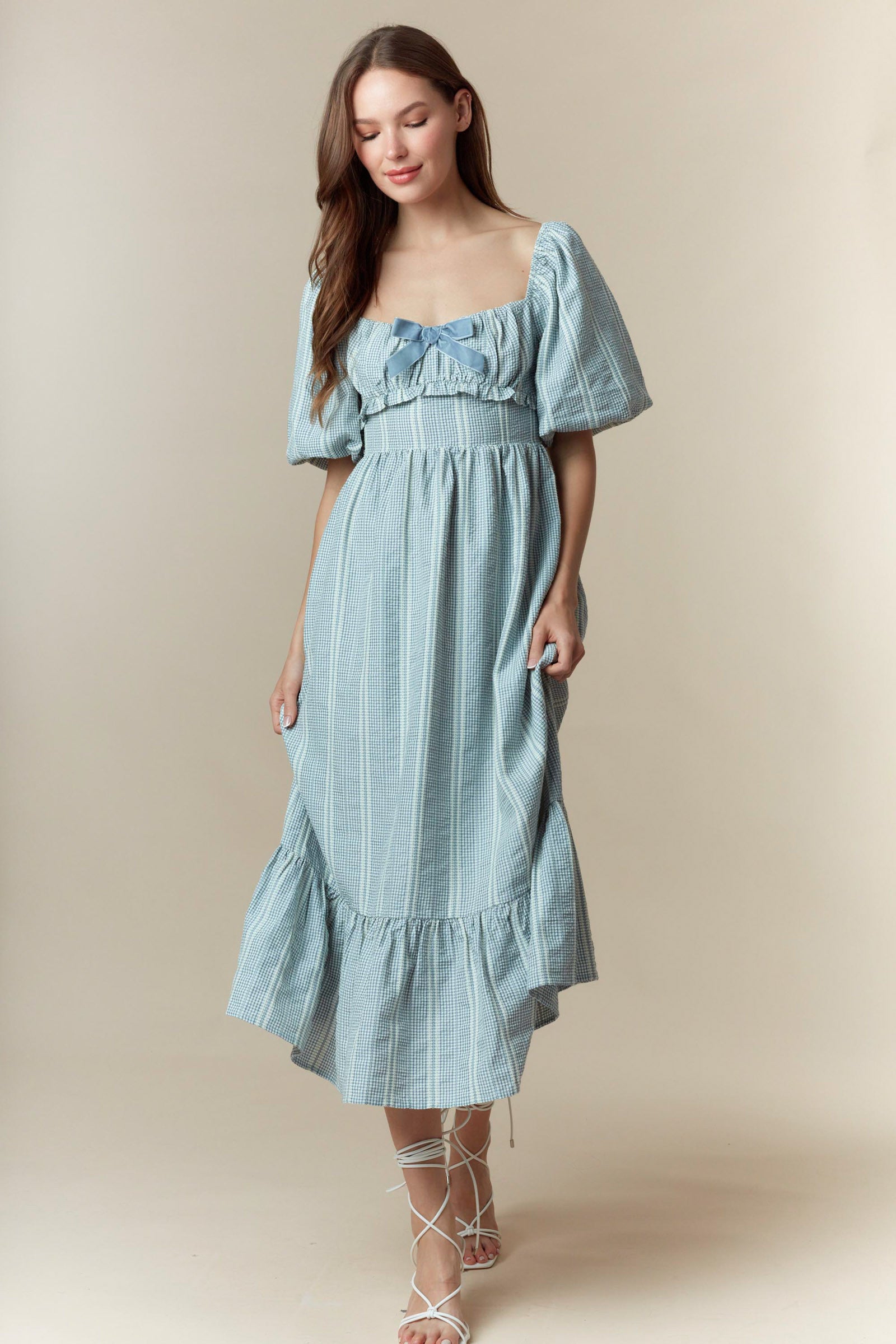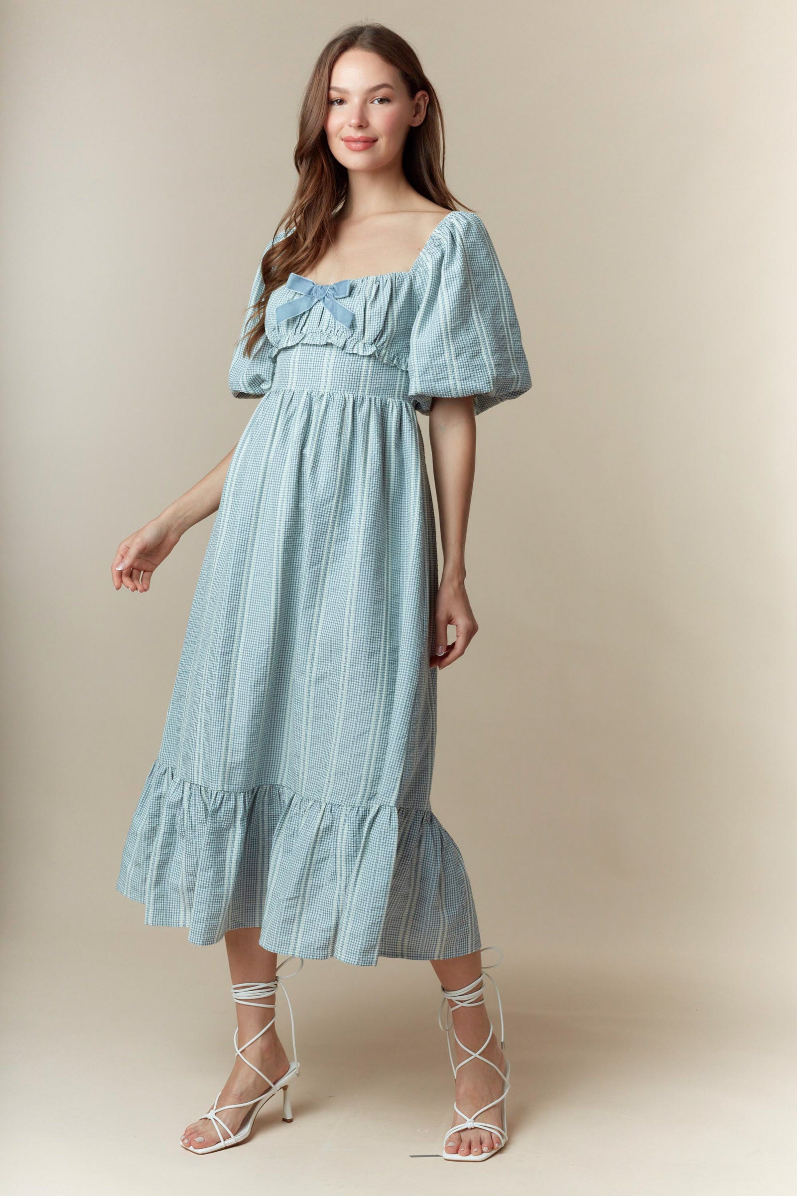 Front Velvet Bow Detail Shorts Bubble Sleeve Midi Dress