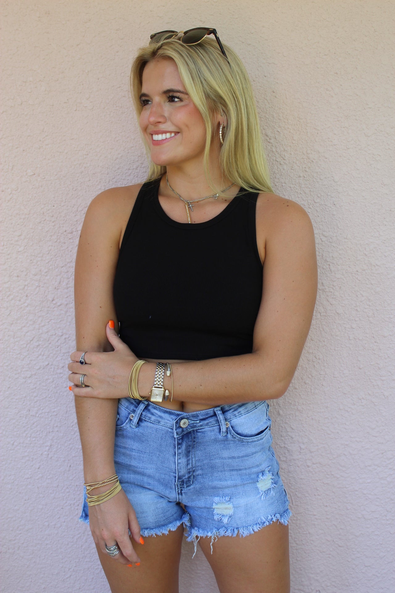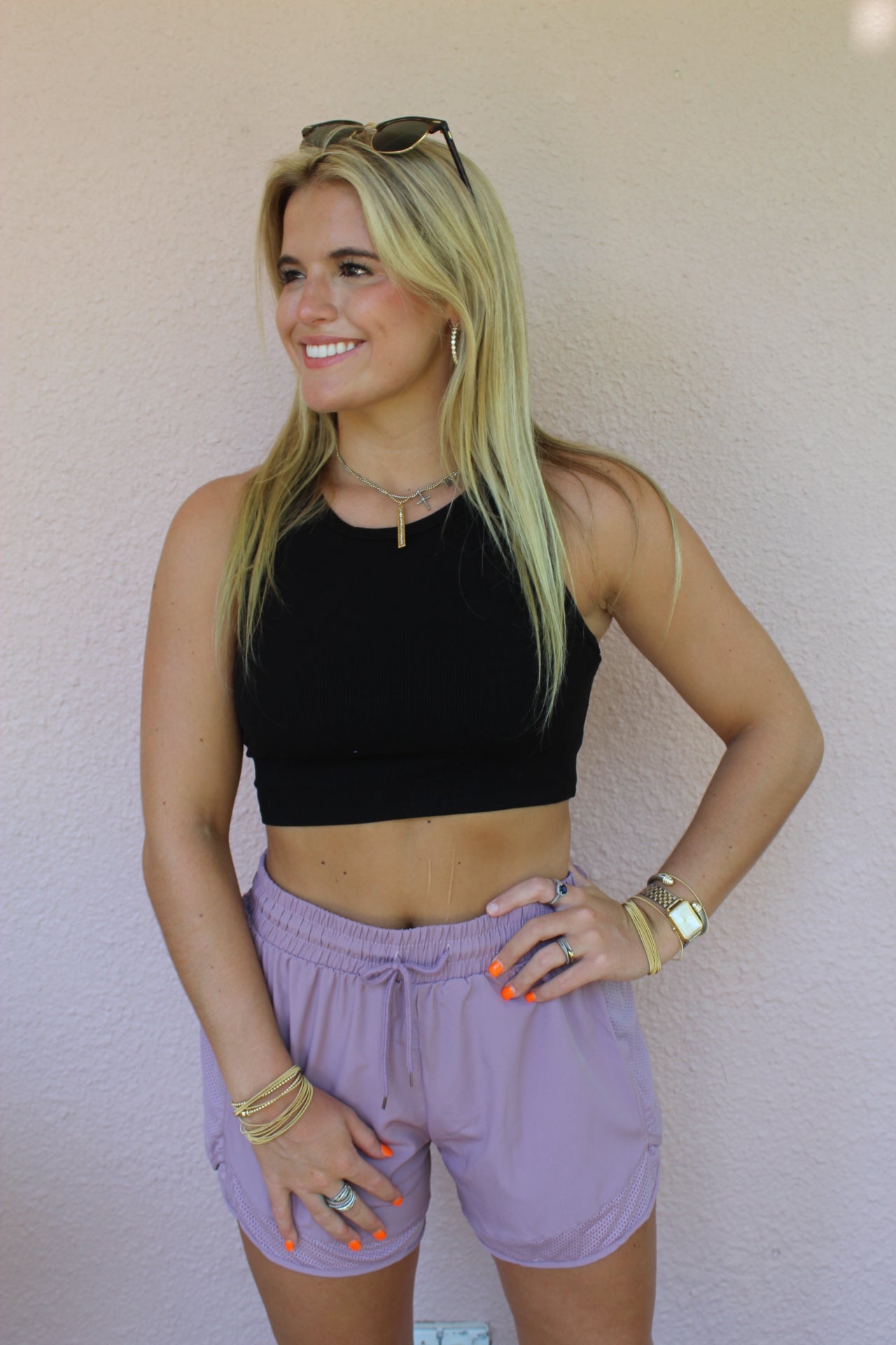 Wear this Mono B tank with your favorite pair of leggings while you head to the gym or with denim bottoms and a denim jacket while you head out. Either way, you cannot go wrong with this cropped athleisure tank top. It features a racerback design and was made of solid fabric with micro ribbing.