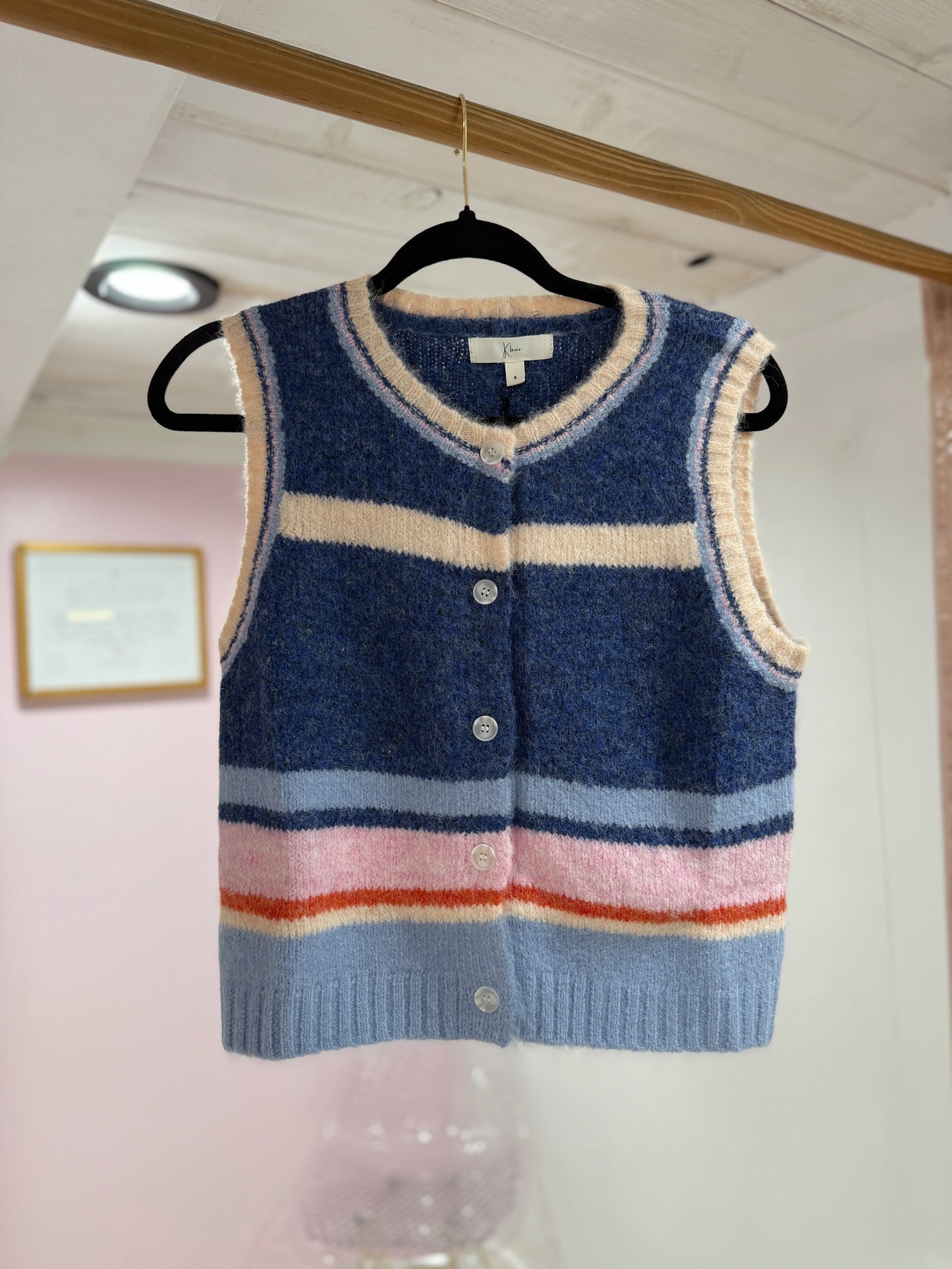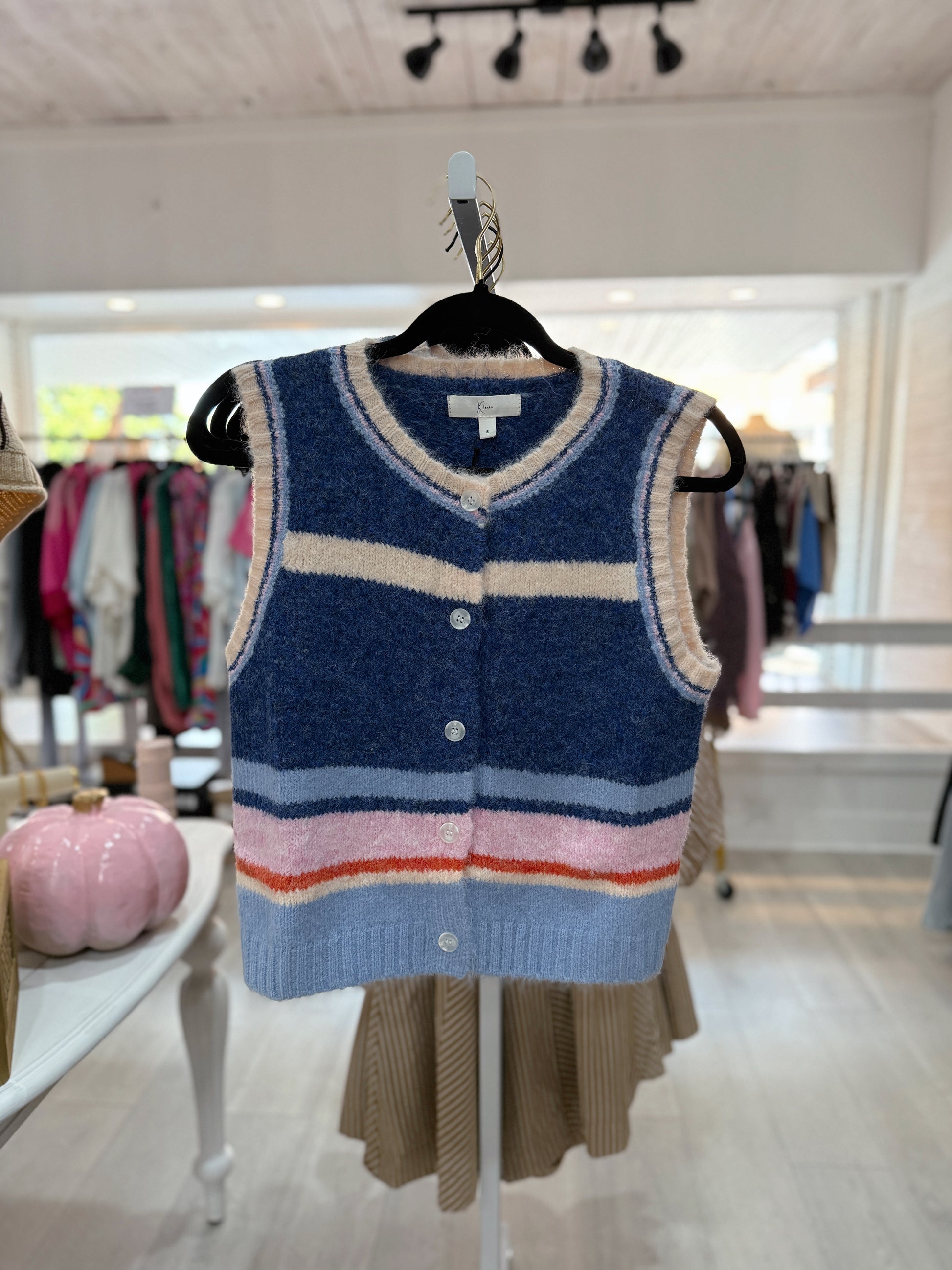 MULTI COLORED STRIPED SWEATER VEST TOP WITH BUTTONS