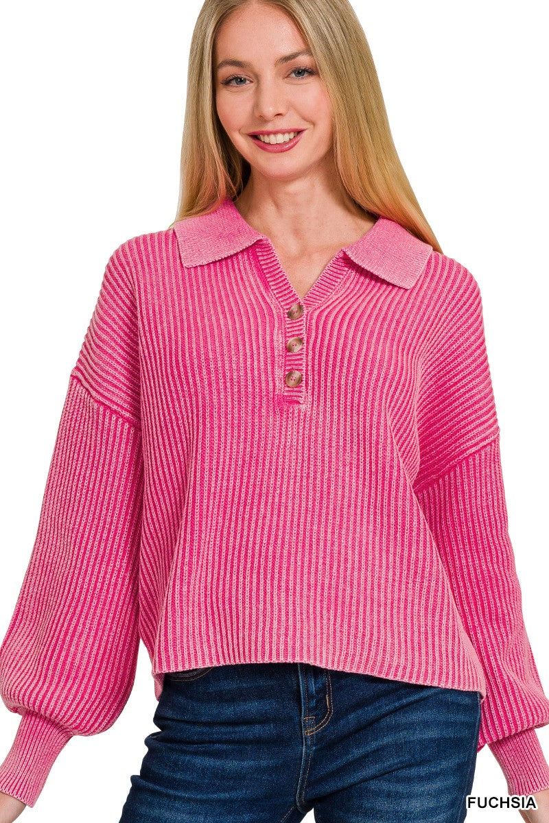WASHED COLLARED HENLEY SHIRTS SWEATER