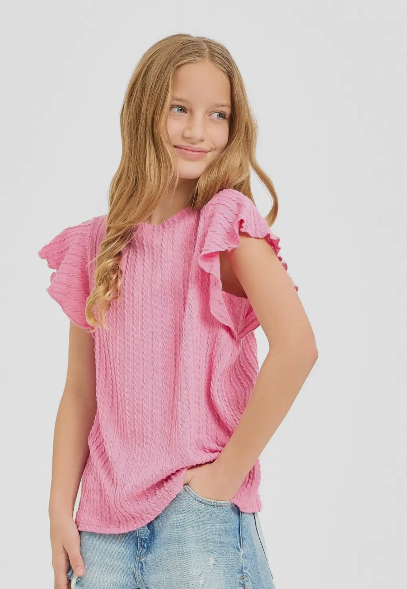 *TWEEN* Knit Ruffle Sleeve Top (pink)