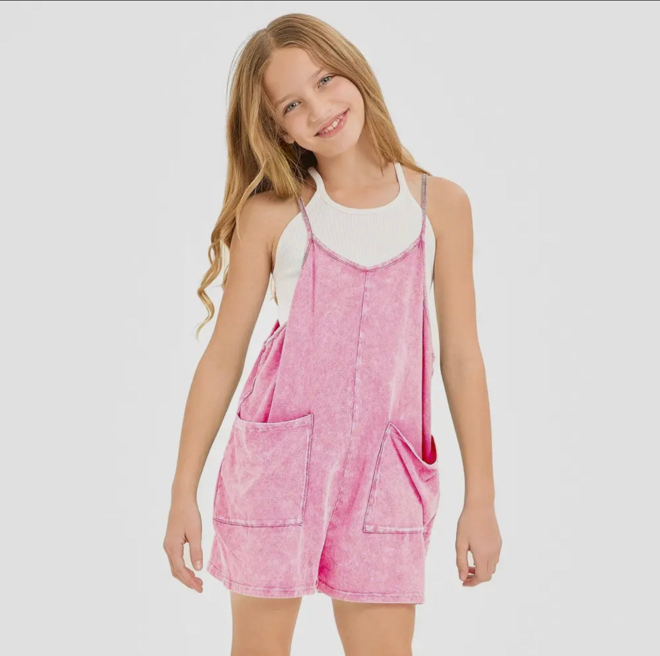 *TWEEN* Mineral Wash Romper (pink)