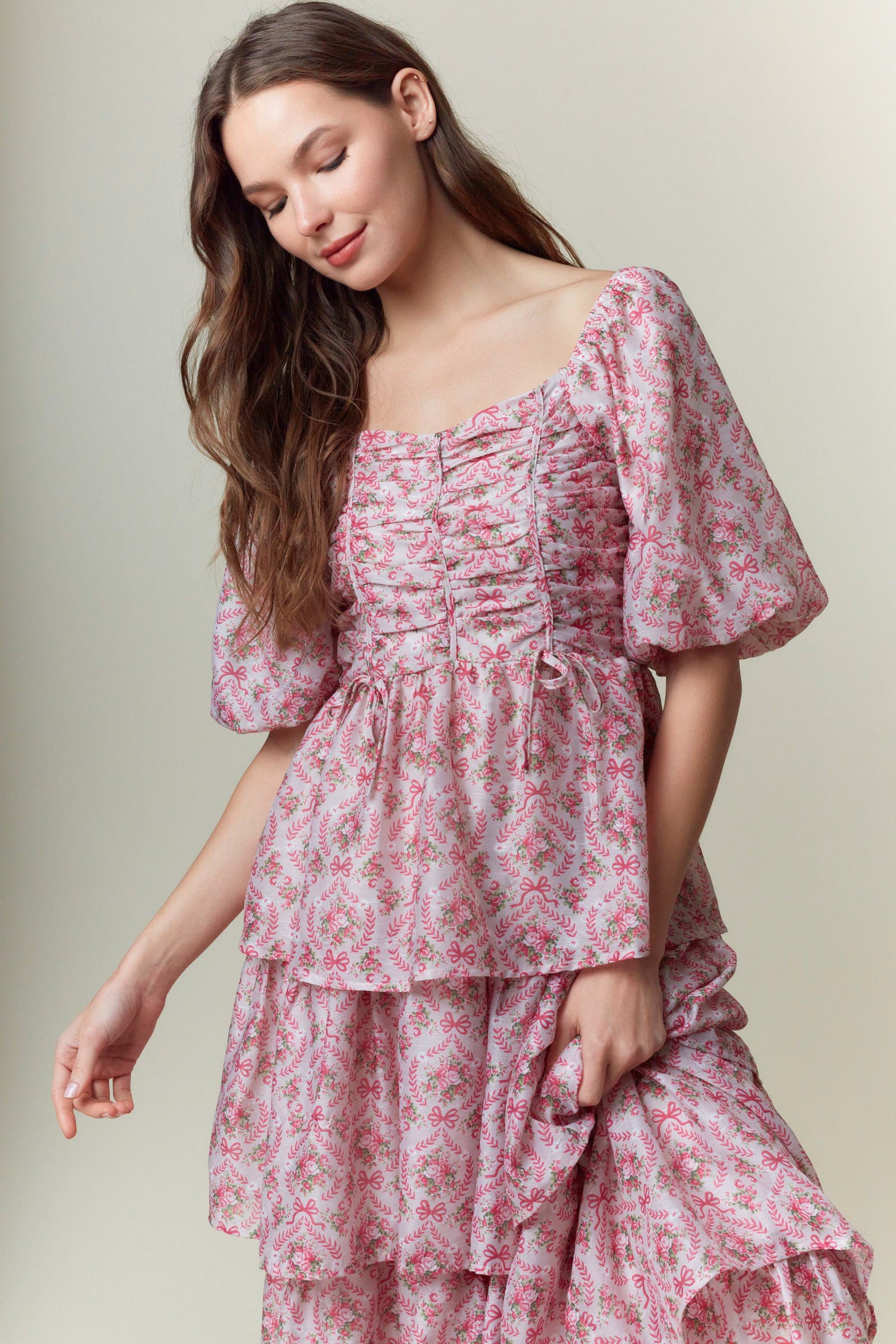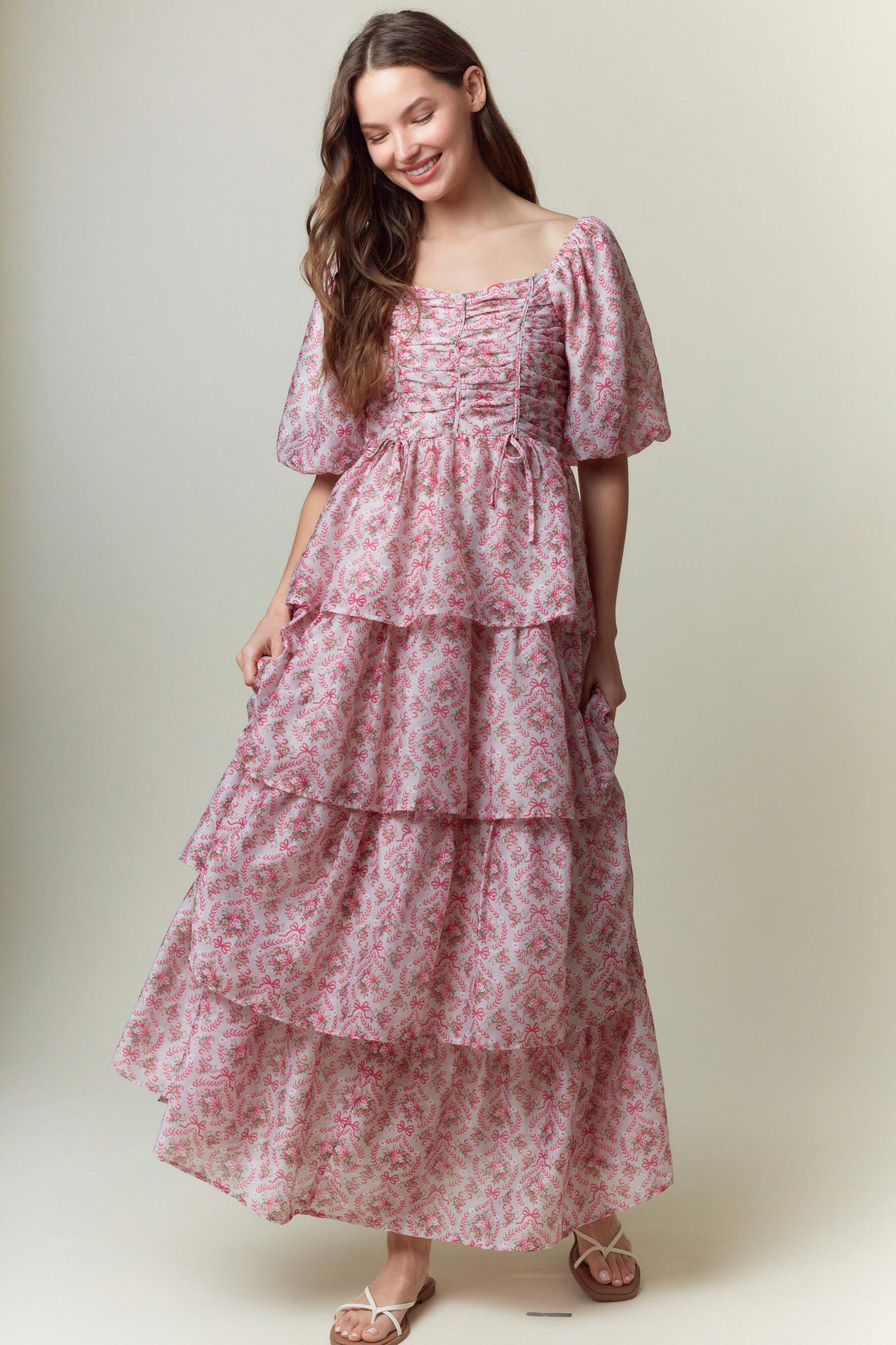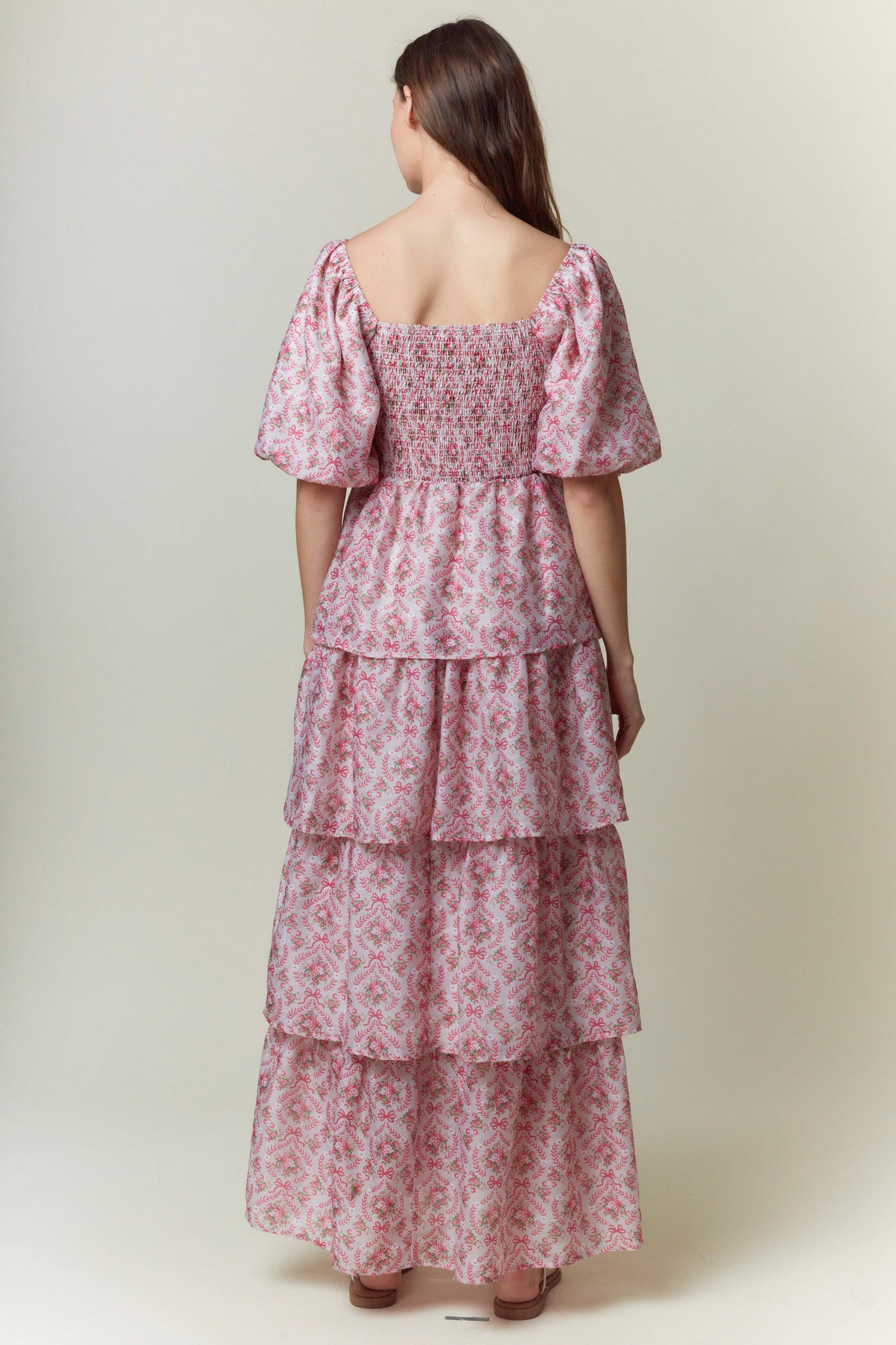 Jacq Chiffon Puff Sleeve Tiered Maxi Dress